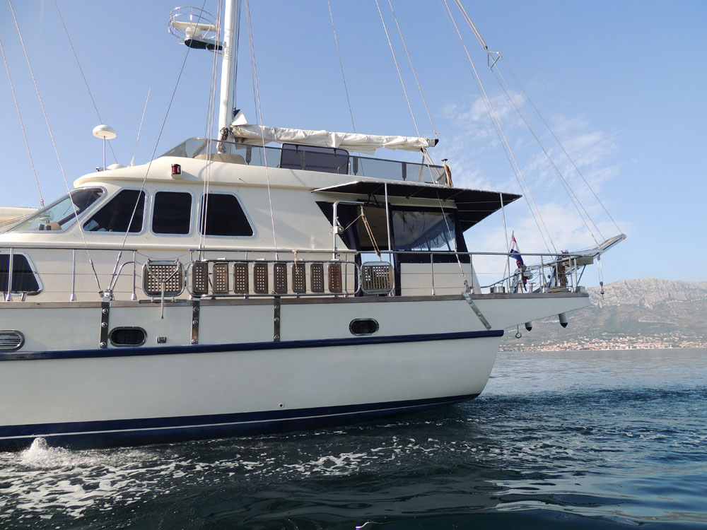 Shipboard accommodation, permits, insurance, all equipment on board except waverunner which is extra charged 150€/h, tender with outboard engine, linens and towels, fuel for main engine, 4 h of navigation per day, crew salaries, yacht cleaning, guest taxes, gasoline for tender, diesel for generator 24/7, Wi-Fi internet connection, VAT.